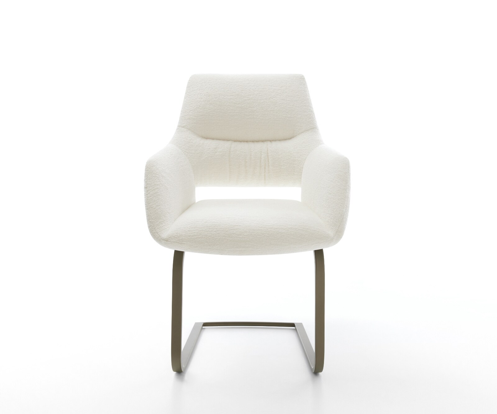 Cantilever Yago-Flex avec accoudoirs bouclé doux beige pied cantilever plat aspect titane resorts ensachés