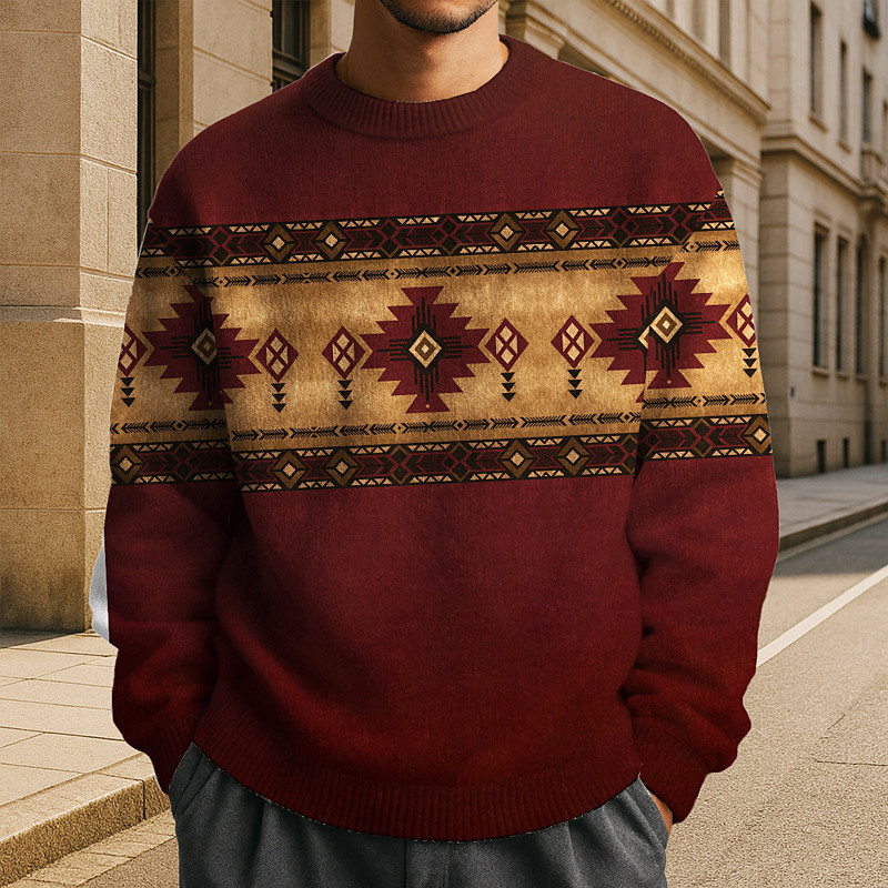 Men's Geometric Pullover Sweater Jumper Fair Isle Sweater Knitwear Crewneck Casual Vacation Daily 3D Print Knitting Keep Warm Long Sleeve Spring Fall Winter White Red Green