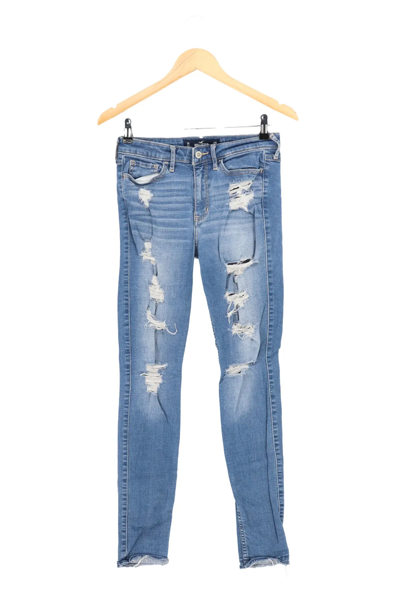 HOLLISTER Damen Jeans W26 Blau Distressed Ripped Casual