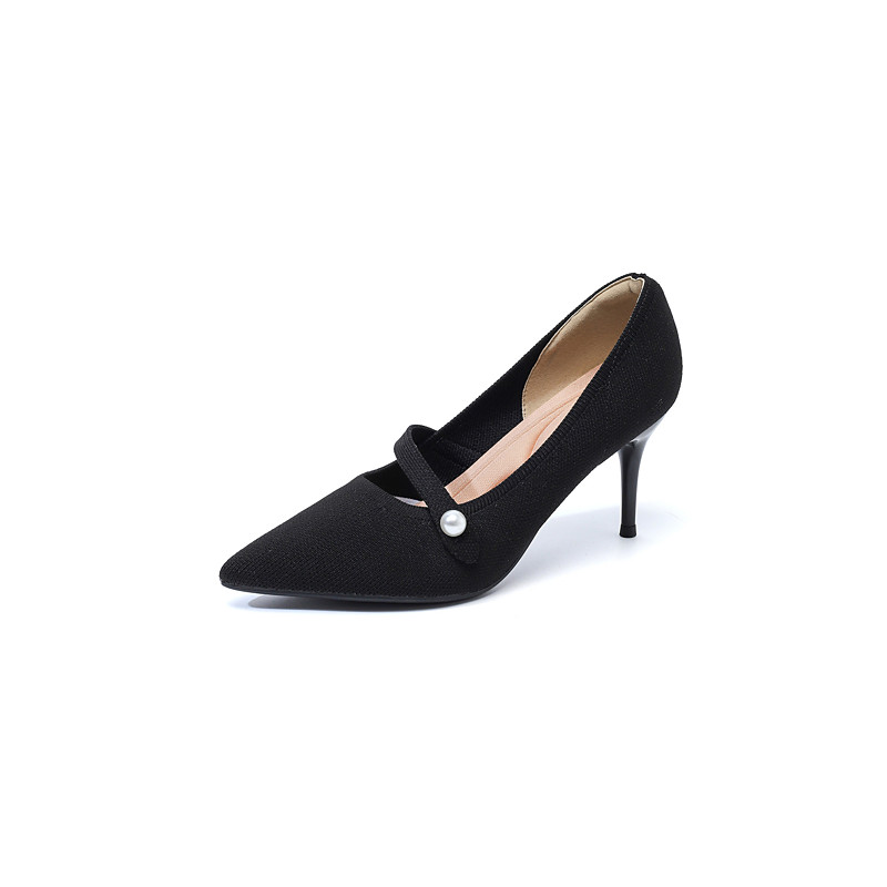 Women's Burgundy Pointed Toe Knit Pumps with Pearl Strap Accent – Comfortable High Stiletto Heels for Daily Commuting, Office Wear Elegant Professional Ladies