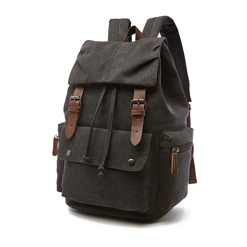 Men's Vintage Canvas Backpack with Leather Straps, Multi-Pocket Travel Rucksack for School, Work, Hiking and Outdoor Use