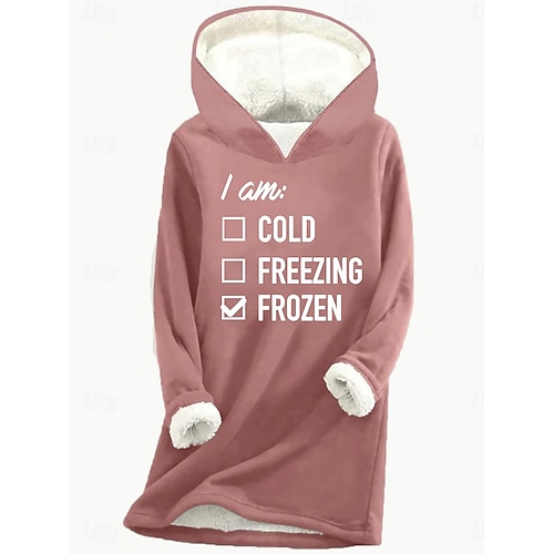 Damen Kapuzenpullover Buchstabe Warm Lässig Flauschig Langarm Mit Kapuze Lange Oberteile Lässig Sport Druck Rosa Blau Grau Winter