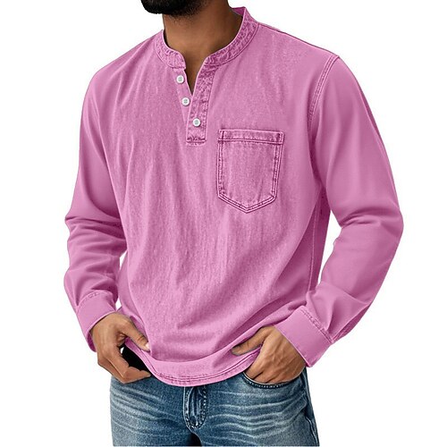 Per uomo Vintage Maglia Henley Camicia 100% cotone lavaggio acido Maglietta Manica Lunga Retrò Vintage Casual Casuale Primavera Autunno Tutte le stagioni Blu Nero Rosa Viola Marrone Henley Maglietta
