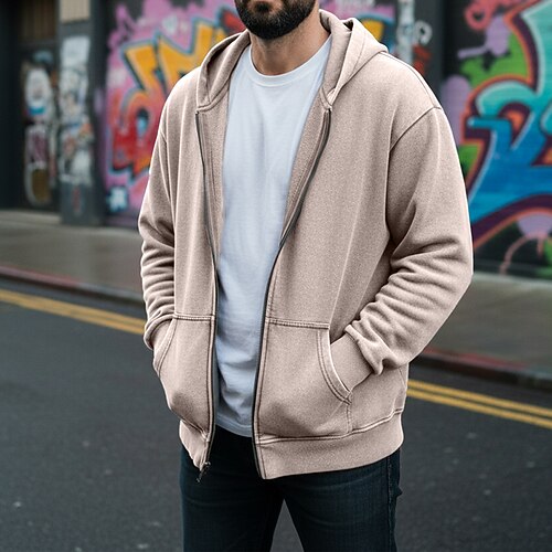 Per uomo Felpa con cappuccio Felpa con cappuccio invecchiata Aalbicocca Nero Rosa Caffè Grigio Con Cappuccio Semplice Tasca Quotidiano Uscire Abbigliamento casual alla moda 100% Cotone Vintage Retr