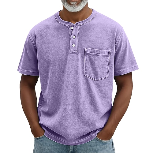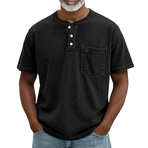 Per uomo Maglia Henley Camicia 100% cotone lavaggio acido Maglietta Manica Corta Retrò Vintage Casual Cardigan con Bottoni Tasca Lavato Henley Casuale Estate Primavera Autunno Marrone scuro Nero Rosa