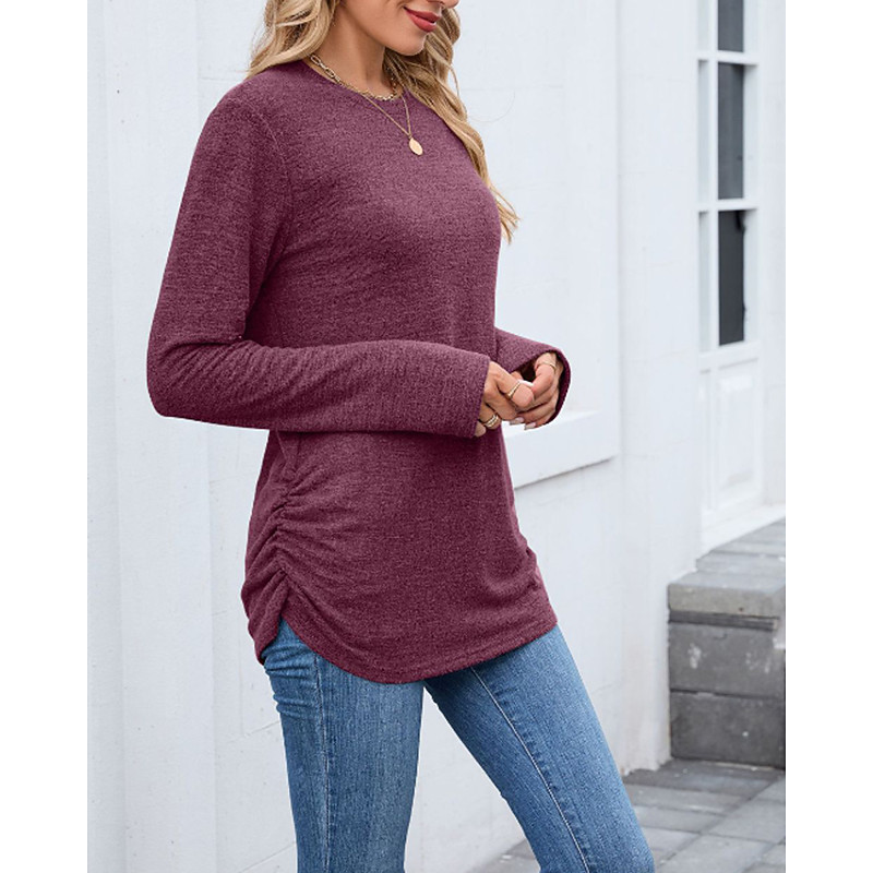 Women's Texture Blouse T Shirt Plain Casual Long Sleeve Crew Neck Regular Tops Daily Weekend Black Wine Army Green Blue Brown Fall