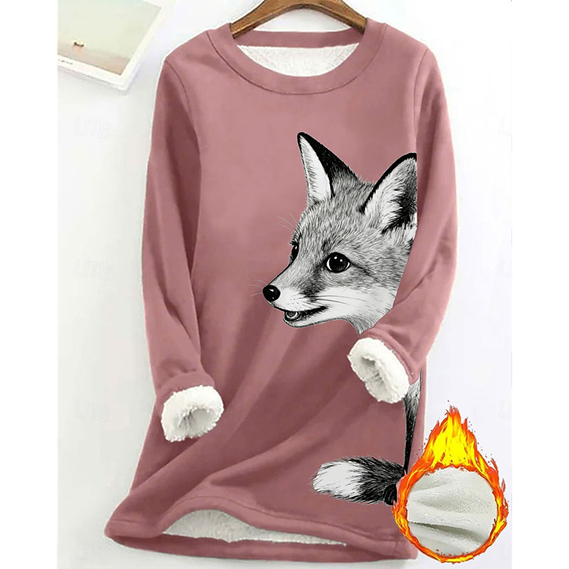 Women's Pullover Sweatshirt Animal Fashion Basic Casual Long Sleeve Crew Neck Long Tops Street Dailywear Casual Print Fleece Lined Black Yellow Pink Dark Pink Blue Fall Winter