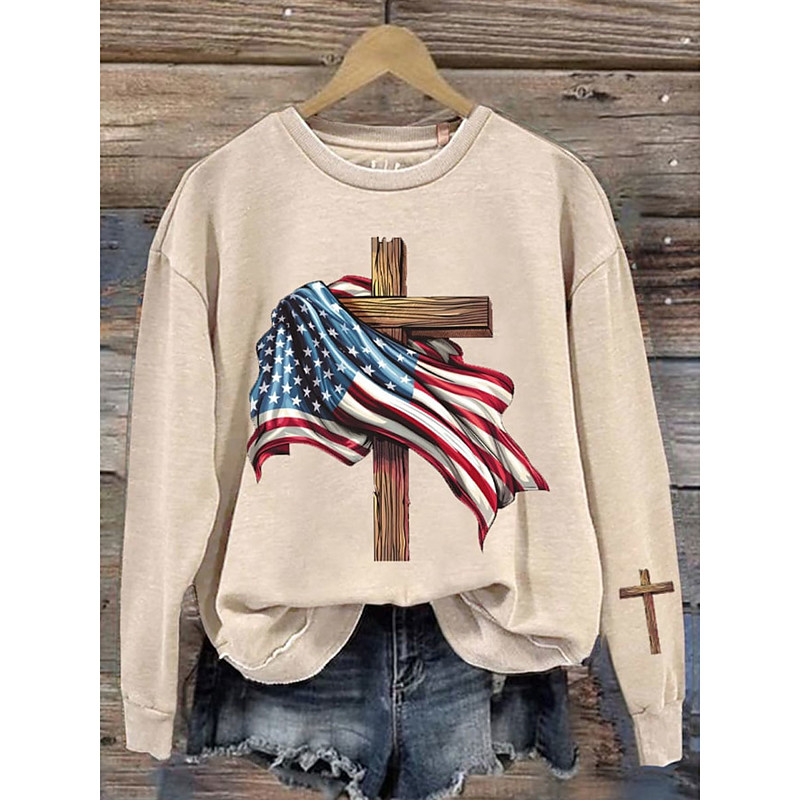 Women's Sweatshirts Graphic Letter Vintage Casual Long Sleeve Crew Neck Regular Tops Street Dailywear Casual Print Blue Green Beige Gray Spring Fall Winter