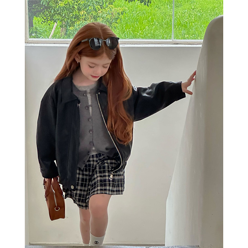 Kids Girls' Black Leather Jacket Jacket Solid Color Fashion Zipper Pocket Outdoor Coat Outerwear 4 years Fall Black