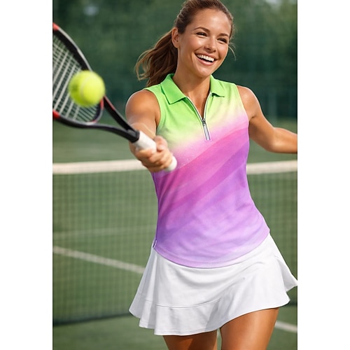 Per donna Blocco di colori Sfumatura Maglietta sportiva Polo da golf Maglia da tennis Maglietta da tennis Senza Maniche Cerniera Floreale UPF50 Resistente ai Raggi UV Alta elasticità Traspirante