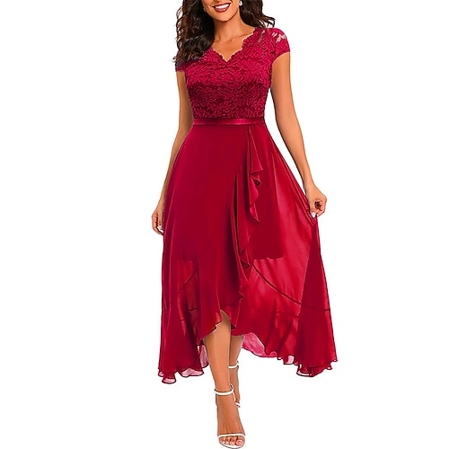 Per donna Abito Midi Vestito da Festa Abito da Cocktail Vestito in Chiffon Elegante Moda Moderno Festa serale Feste Matrimonio Vestibilità regolare Semplice Manica Corta Scollo a V Nero Rosa Rosso