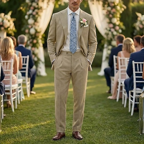 Uomo Abiti da festa Matrimonio primaverile Casuale Bianco Rosa Primavera Estate Tuta Bavero classico Festa Formale Tinta unita Vestibilità su misura 2 pezzi Monopetto a un bottone