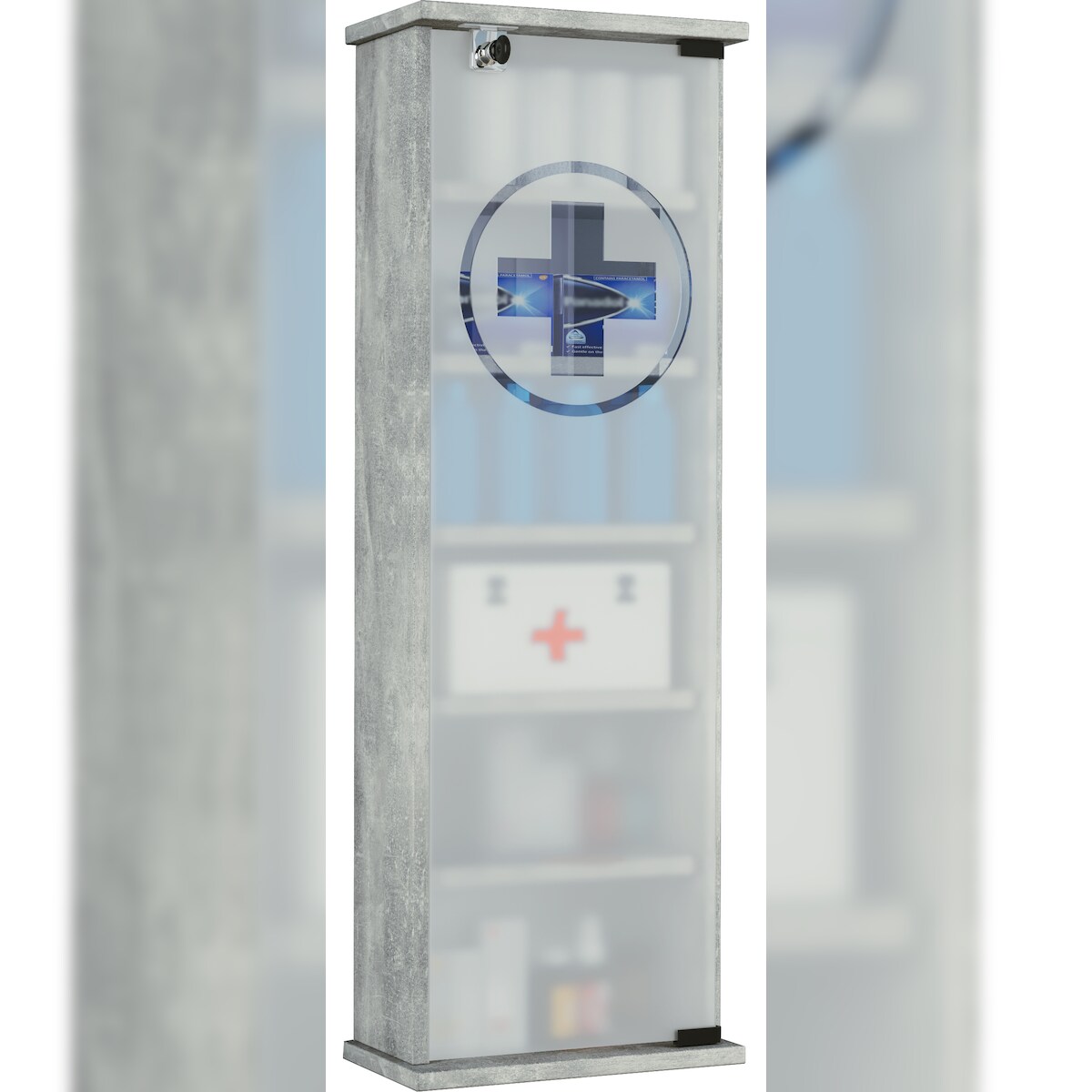 VCM Medizinschrank Omal Beton-Optik H. 92 x B. 31 x T. 18 cm