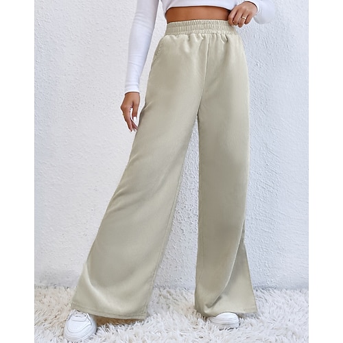 Per donna Gamba larga Pantaloni Eleganti Streetwear Casual Lunghezza intera Naturale Semplice Elastico in vita Confortevole Streetwear Ferie Abbigliamento quotidiano Verde mela Rosso violaceo Grigio