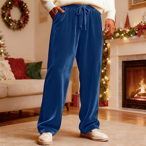 Per uomo Pantaloni Pantaloni Larghi Pantaloni casual Pantaloni di Velluto Tasca Gamba Dritta Tinta unica Semplice Comodità Morbido Lunghezza intera All'aperto Casa Quotidiano Vacanza Moda Nero Giallo