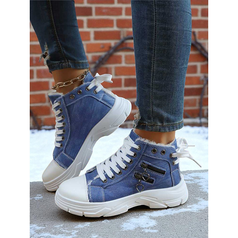 Women's Blue Warm Fleece-Lined High-Top Sneakers – Winter Casual Denim Shoes for Walking, Travel and Daily Wear