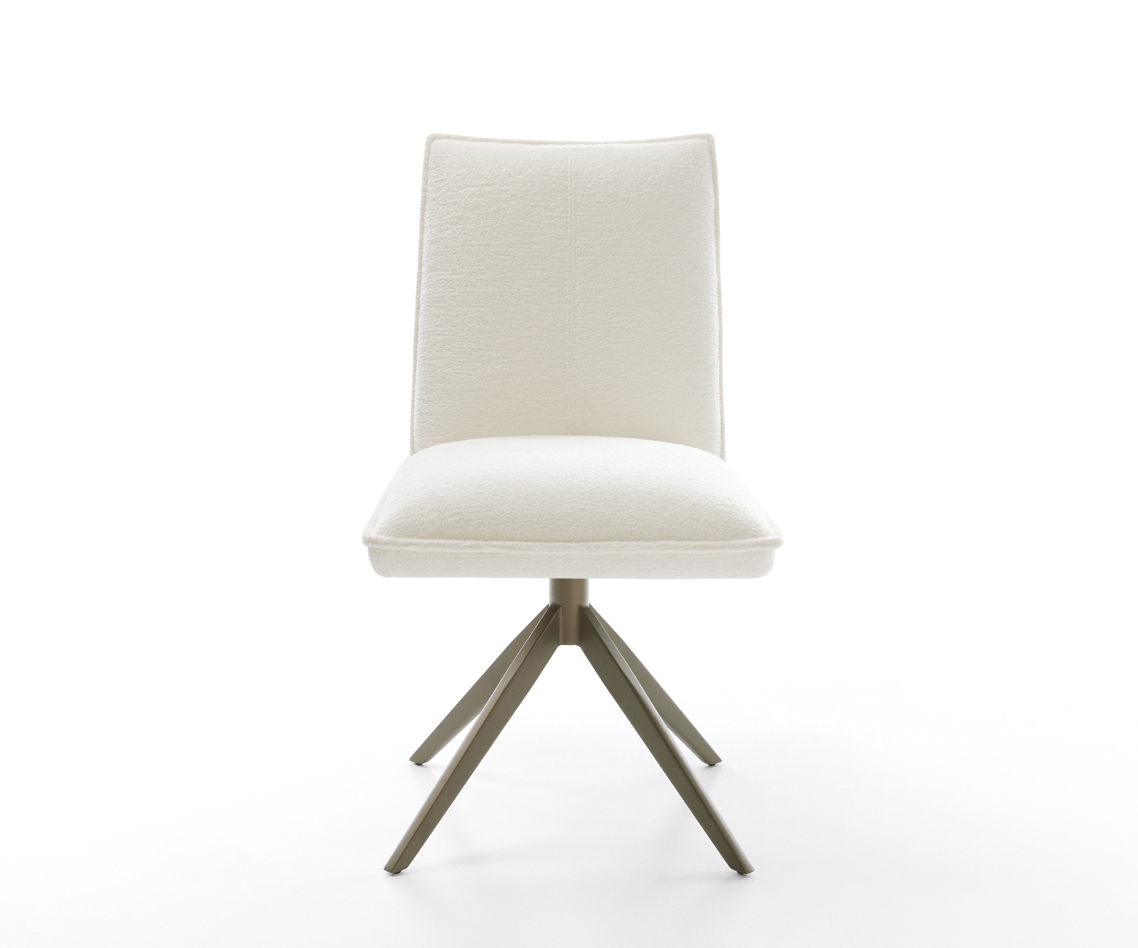 Chaise-pivotante Lelio-Flex bouclé doux beige pied croisé large aspect titane pivotement sur 360° fonction bascule resorts ensachés