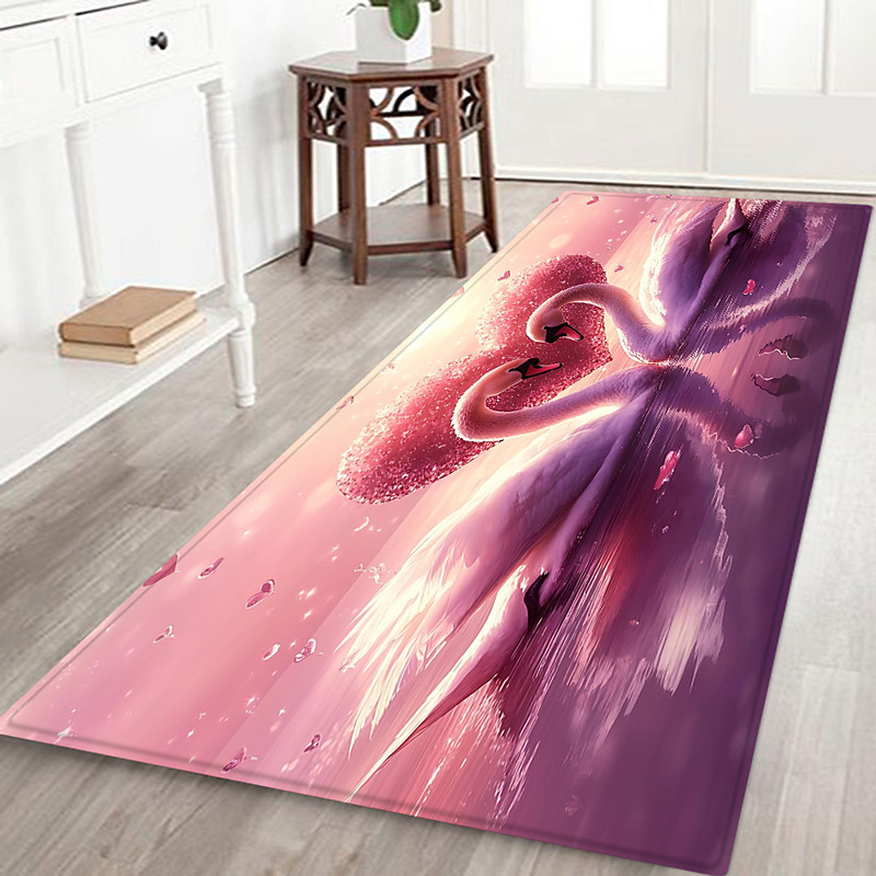Non Slip Hallway Runner Rug with Plants Flowers and Swan Pattern, Flannel Fabric Printed Floor Mat for Entrance, Bathroom, and Home Decoration