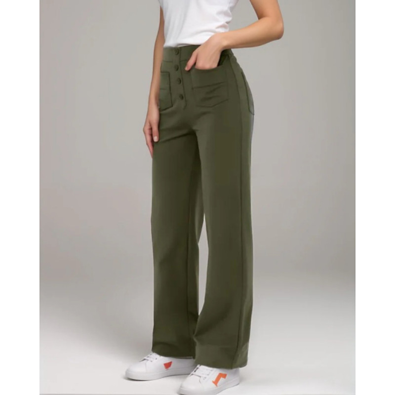 Women's Wide Leg Slacks Streetwear Casual Full Length Natural Plain Pocket Elastic Waist Comfortable Holiday Daily Wear Weekend Grey Black Army Green Khaki Fall Regular Fit