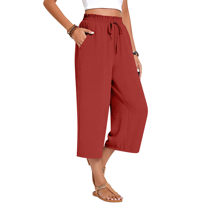 Women's Wide Leg Capri Pants Slacks Streetwear Casual Calf-Length Natural Plain Pocket Elastic Drawstring Design Soft Outdoor Vacation Daily Dark-Gray Orange red Black White Fall Regular Fit