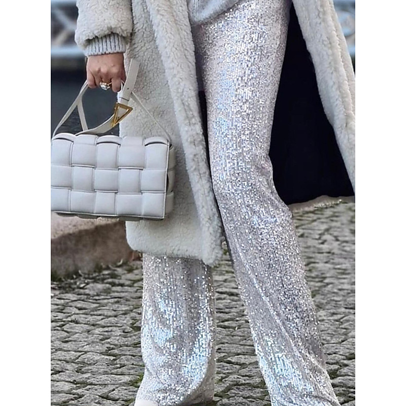 Women's Straight-Leg Trousers Fashion Streetwear Sparkle Full Length High Waist Plain Shimmery Comfy Soft Comfortable Inelastic Outdoor Party Silver Black Pink Fuchsia Summer Spring Regular Fit