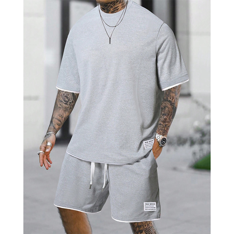 Men's Workout Set Tracksuit T shirt Shorts Set Outfit Set Crew Neck Outdoor Daily Sports Pocket Drawstring 2 Piece Plain Light Green Pink Red Polyester Activewear Classic Casual Summer