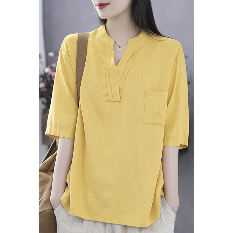 Women's Linen-Inspired Shirts Blouse Plain Modern Casual 3/4 Length Sleeve V Neck Regular Tops Daily Holiday Going out Pocket White Yellow Navy Blue Summer