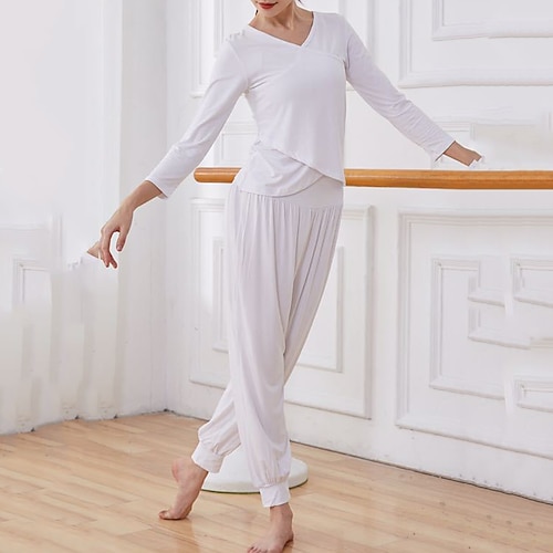 Per donna Maglietta da yoga Sport in alto Tinta unica Completo Abbigliamento Autunno Nero Bianco Modal Danza Pilates Yoga Vita Alta Leggero Traspirante Manica Lunga Sport Abbigliamento sportivo