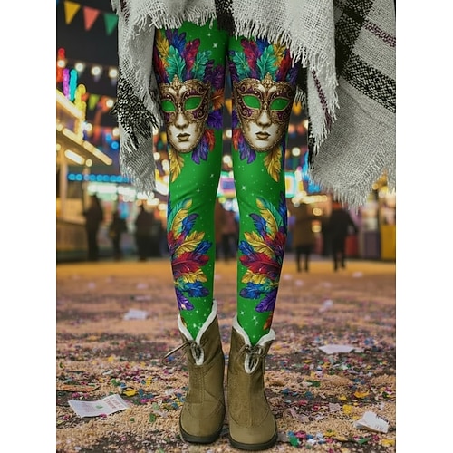 Karnevals-Leggings für Damen, bequeme Leggings im Vintage- und Ethno-Stil, lange Hose mit hohem Bund, Grafikprint, komfortabel, hochelastisch, lässig, für Alltag und Urlaub, marineblau, gelb, lila,