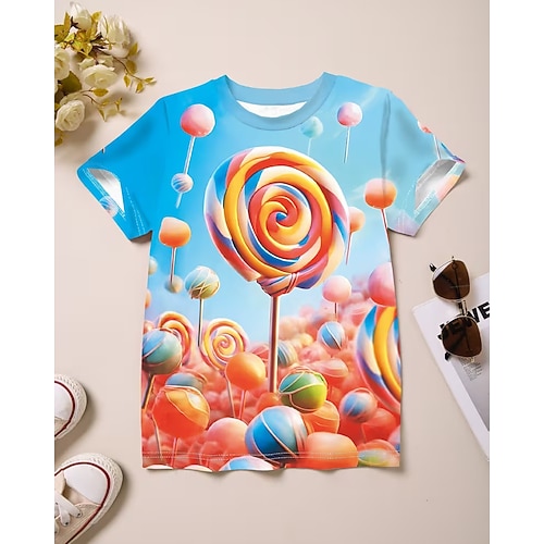 Karnival Unisex Jungen 3D Grafik Süßigkeit T-Shirt Kurzarm 3D-Druck Sommer Frühling Sport Mode Streetwear Kinder 4-12 Jahre Rundhalsausschnitt Lässig Täglich Outdoor Normale Passform