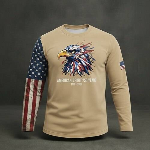 Amerikas 250. Jahrestag Herren Grafik Flagge Adler T Shirt T-Shirt Langarmshirt Langarm T-Shirt 3D-Druck Rundhalsausschnitt Hemd Mode Täglich Basic Täglich Urlaub Straße Marineblau Khaki Armeegrün