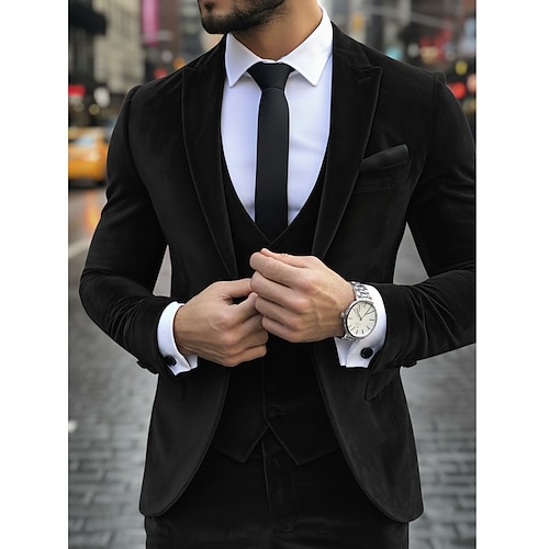 Herren Weihnachtsanzug Business Party Samtanzug Steigendes Revers Schwarz Gelb Mode Alltag Einfarbig Tailored Fit 3-teilig Einreiher Einknopf