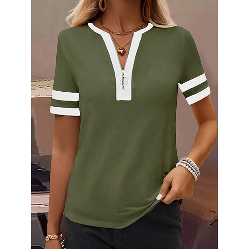 Per donna Maglietta Semplice Moda Moderno Casual Manica Corta Scollo a V Top Regolari Quotidiano Weekend Nero Vino Verde militare Blu Cachi Estate Primavera