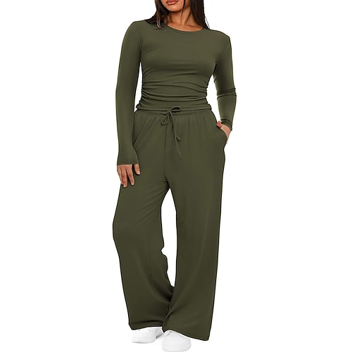 Per donna Attivo Streetwear Set di Pantaloni Bolero Top Manica Lunga Girocollo Tinta unica Coulisse All'aperto Vacanza Quotidiano Nero Rosa Verde militare Autunno Vestibilità regolare