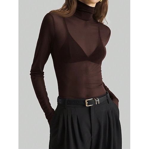 Per donna Blusa Tinta unica Elegante Essenziale Casual Manica Lunga Dolcevita Top Regolari Quotidiano Patchwork Rete Verde salvia Nero Vino Blu marino Marrone Estate Primavera Autunno