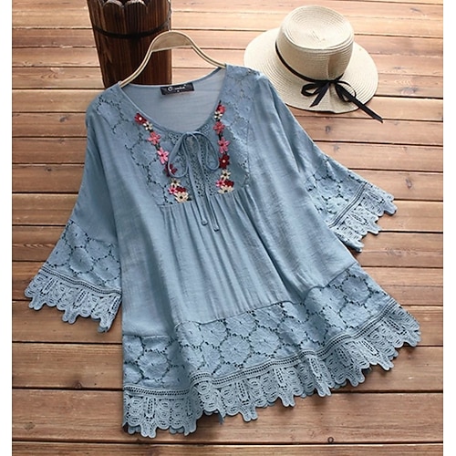 Per donna Camicia Semplice Elegante Manica 3/4 Cravatta al collo Top Regolari Ferie Uscire Arricciato Ricamato Blu Nero Bianco Giallo Rosa Estate Primavera