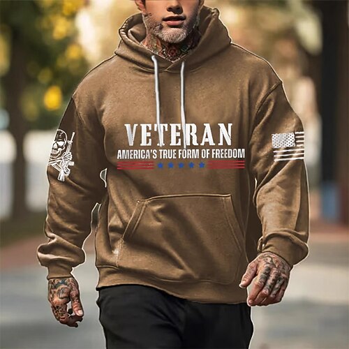 Per uomo Lettera Stampe Grafiche Bandiera Nazionale Felpa con Cappuccio Moda Quotidiano Casual Manica Lunga Con Cappuccio Vacanza Feste Abbigliamento casual alla moda Festival Nero Blu reale Marrone