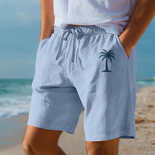 pantaloncini da uomo in cotone e lino stampati con albero di cocco pantaloncini hawaiani estivi pantaloncini da spiaggia coulisse elastico in vita traspirante morbido corto casual quotidiano vacanza
