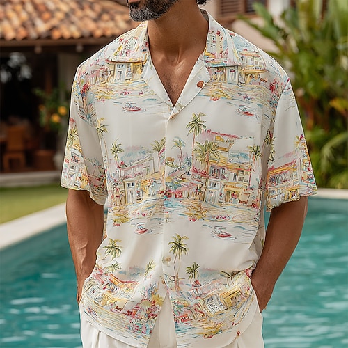 Per uomo Albero di Cocco Palma di Cocco Piante Tropicali Camicia Camicia con colletto cubano Camicia hawaiana estiva Manica Corta Hawaiano Vacanza Ferie Abbigliamento mare Estate Primavera Camicia