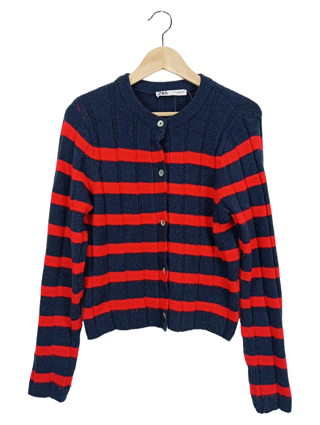 ZARA Strickjacke M Gestreift Blau Rot Vintage Preppy Look