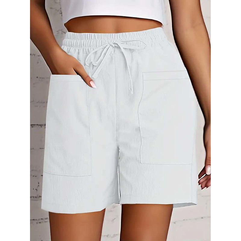 Women's Slacks Comfort Casual / Sporty Short High Waist Plain Drawstring Casual Daily carmine Apricot Black White Summer Regular Fit