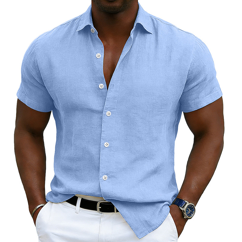 Men's Linen Shirt Summer Shirt Beach Wear Button Up Shirt Plain Casual Vacation Blue White Light Green Pink Short Sleeve Turndown Summer Clothing Apparel Plain