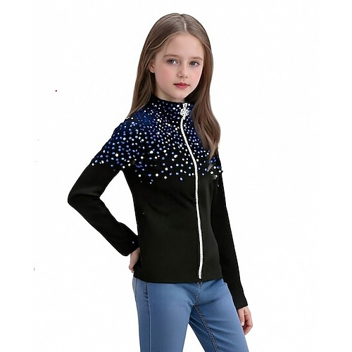 giacca in pile per pattinaggio artistico, giacca da pattinaggio sul ghiaccio da donna e da ragazza, top nero elastico, abbigliamento da pattinaggio per competizione, termico, caldo, con