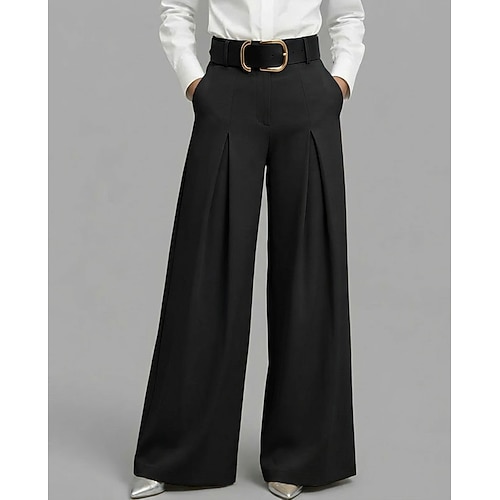 Per donna Gamba larga Elegante Lavoro Lunghezza intera Vita Alta Semplice Micro-elastico Quotidiano Abbigliamento casual alla moda Ufficio Nero Cachi Primavera Vestibilità comoda