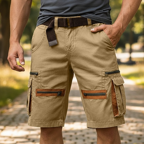 Per uomo Carico tattico Pantaloncini cargo Shorts Pantaloncini casual Tasca Elastico in vita Semplice Tinta unita Corto Casuale All'aperto Abbigliamento casual alla moda Moda Streetwear Nero Cachi