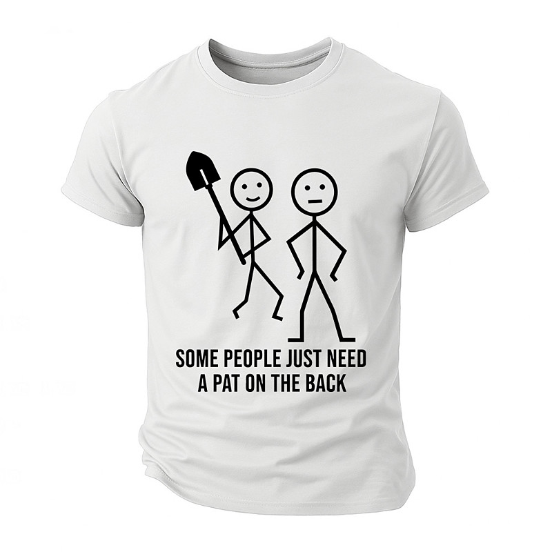 Mens Olive Green Dark Humor Graphic T-Shirt - Some People Just Need a Pat on the Back Shovel Design