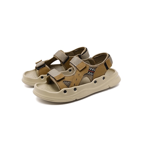 sandali estivi da trekking da uomo color cachi, traspiranti e leggeri, con cinturini regolabili, ideali per attività all'aperto in resort e avventure