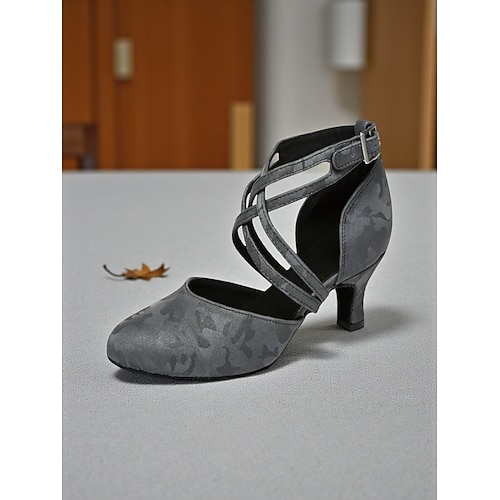 scarpe da ballo latino professionali da donna - tacchi da sala da ballo con cinturino a T testurizzato, suola esterna in pelle scamosciata flessibile, fibbia di sicurezza design traspirante per