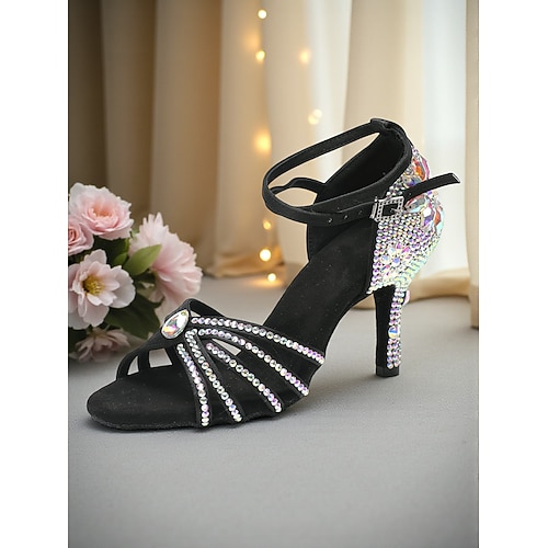 tacchi da ballo da sala con strass da donna – scarpe da salsa latina con cinturino e suola in pelle scamosciata, perfette per spettacoli e balli competitivi