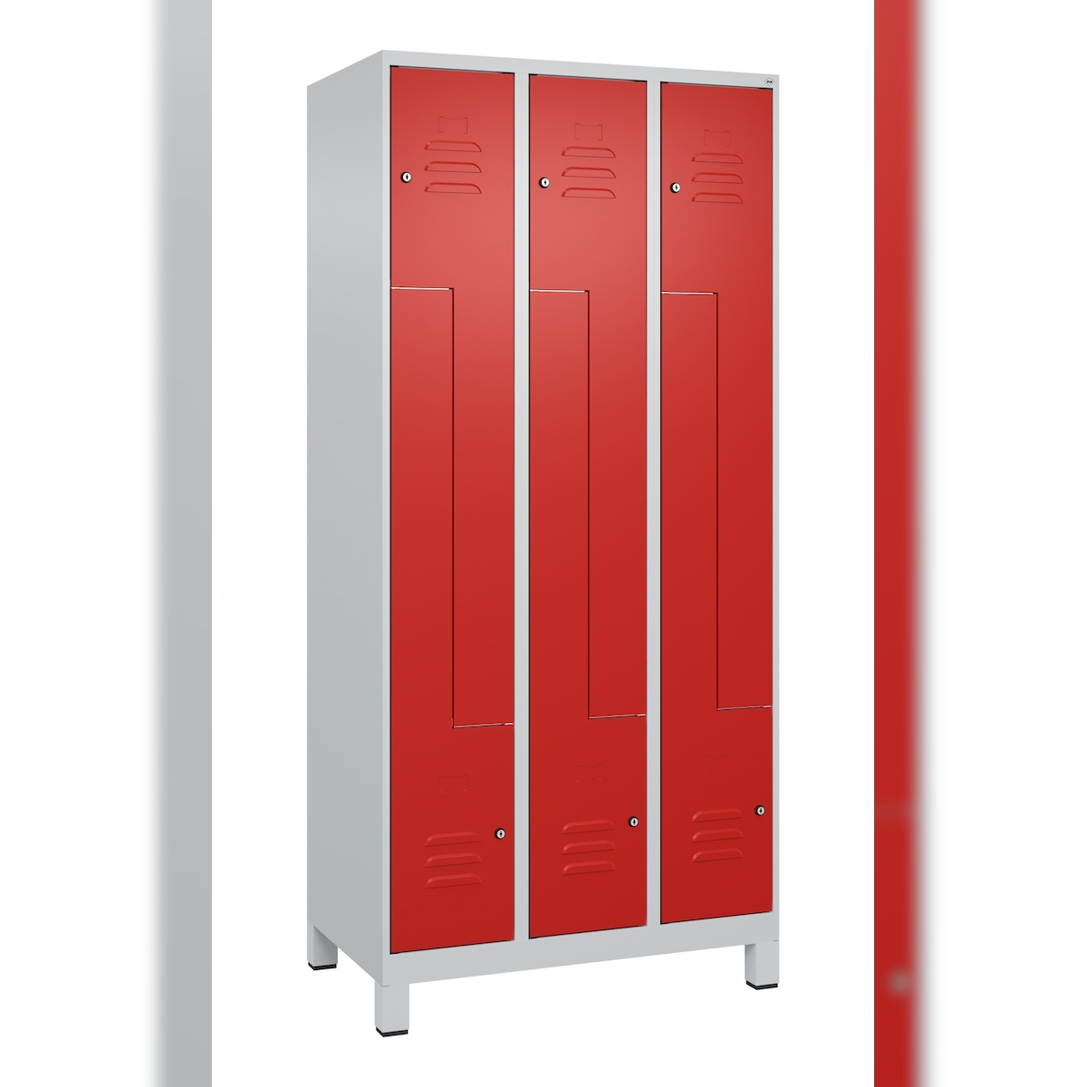 C+P Z-Spind Classic PLUS, Füßen, 6 Abteile, HxBxT 195x90x50cm, Zylinderschloss, Hellgrau/Rot von PROREGAL